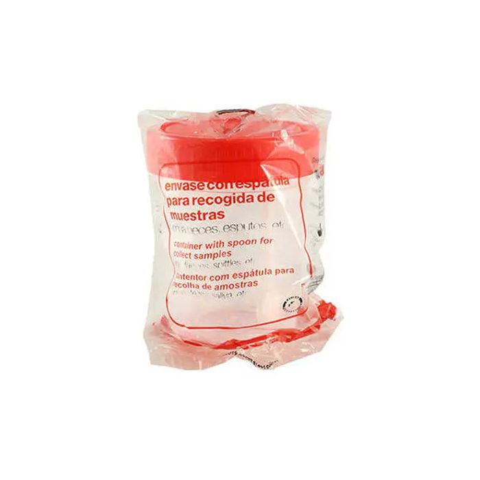 Incorpora cucharilla interna extraíble, con forma de cazoleta, colocada en el tapón que facilita la recogida de muestras sólidas, longitud de 6,9 cm. Va dentro de la bolsa unitaria de polipropileno biorientado de 20 μm.
