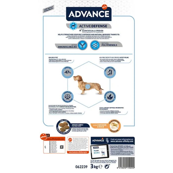 Advance Canine Adult Light Mini Pollo 3Kg, pienso para perros