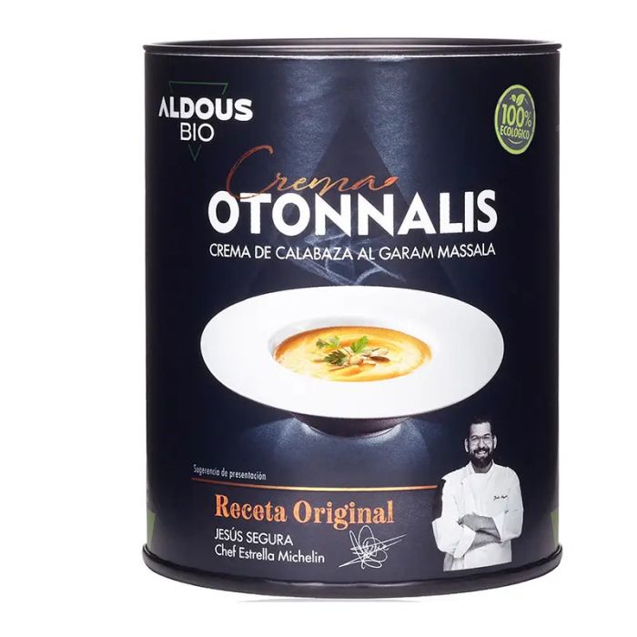 La crema Otonnalis Aldous Bio es una Crema Gourmet de Calabaza al Garam Massala elaborada a partir de la receta de por Jesús Segura (Chef con Estrella Michelin) para que te alimentes de manera saludable y consciente. Sorprende a amigos y familiares con un producto gourmet, elaborado con ingredientes ecológicos a partir de receta de chef con estrella michelín, con un packaging reutilizable que tiene una segunda vida y protege al alimento de la luz ultravioleta. Ingredientes reales, libres de conservantes, colorantes, aditivos, y sin azúcar añadido.