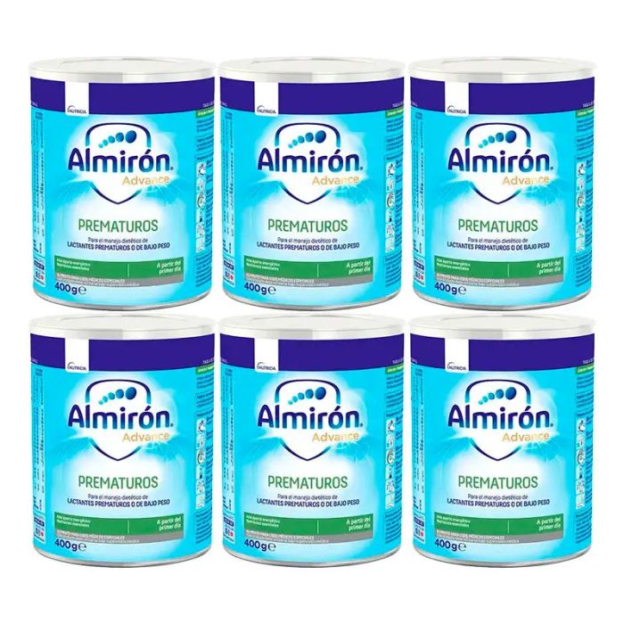 Almirón Advance Prematuros Tin 6 x 400gr es un producto a base de soja que aporta los nutrientes necesarios para el desarrollo y crecimiento del bebé nacido con poco peso, prematuro, o en casos en los que la madre tiene problemas con la lactancia.