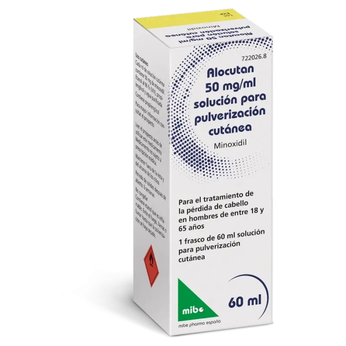 Alocutan 50 mg/ml Minoxidil Solución para Pulverización Cutánea 1 Frasco, 60 ml