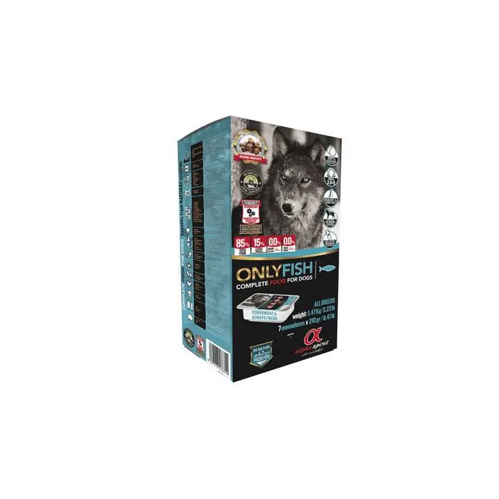 Alimento semihúmedo natural Alpha Spirit Wild Fish para perros El alimento semihúmedo para perros Alpha Spirit Wild Fish es un alimento completo y de alta calidad que satisface todas las necesidades nutricionales de perros de cualquier tipo. Está indicado especialmente para aquellos que tienen intolerancia o alergia a ingredientes como la carne o los cereales. Con esta comida con sabor a pescado tu perro se sentirá lleno de vitalidad y energía. Alpha Spirit Wild Fish es un alimento multivitamínico, muy completo y beneficioso para tu mascota. Con vitaminas que refuerzan el sistema inmunitario de tu perro y hacen que se sienta más fuerte.La carne de pescado ofrece un gran contenido en proteínas, esenciales para la buena conservación de su organismo, evitando posibles enfermedades cardiovasculares. Su alto contenido en pescado fresco, un 85%, procede en su totalidad de fuentes sostenibles del Mediterráneo. Su exclusiva fórmula y los nutrientes que contiene hacen de este pienso un alimento único e ideal para conseguir una dieta completa y equilibrada. Con el pienso Alpha Spirit Wild Fish y su alto contenido en ácidos grasos naturales omega 3 tu mascota lucirá un pelo brillante y suave y una piel sana y tersa. Esta comida para perros elaborada por Alpha Spirit contiene una mínima cantidad de carbohidratos y grasas que ayudan a prevenir enfermedades como la diabetes y la degeneración articular, entre otras. Añadiendo pescado a la dieta diaria de tu peludo, cargamos de una notable cantidad de proteínas de alto valor biológico a su comida. Además, su intenso sabor a mar le encantará a tu perro, y sus minerales y vitaminas le darán toda la fuerza y salud para una vida saludable. Gracias a la novedosa tecnología “Tenderize Technology”, consistente en una técnica novedosa de maceración, hidrolización y deshidratación en frío aplicada en la elaboración de este alimento, tu mascota asimilará mejor las proteínas que lo integran. Los ingredientes frescos y naturales que la componen, aptos para el consumo humano, no pasarán desapercibido al olfato de tu mascota. VENTAJAS DEL PIENSO SEMIHÚMEDO ALPHA SPIRIT WILD FISH: Pienso de alta calidad que satisface todas las necesidades nutricionales de los perros. Ingredientes frescos y naturales procedentes de fuentes sostenibles. Con un 85% de pescado fresco. Sin harinas ni subproductos de pescado. Añade frutas, verduras y plantas aromáticas. Sin cereales ni gluten. Asegura una digestión saludable. Contiene un alto contenido de ácidos grasos naturales omega 3. Refuerza el sistema inmunitario y previene la degeneración articular. Ayuda al mantenimiento de un pelaje suave y brillante y una piel sana y tersa. Textura suave y tierna irresistible. Alta palatabilidad. USO Y ESPECIFICACIONES DEL PIENSO ALPHA SPIRIT WILD FISH: Pienso semihúmedo natural para todo tipo de perros, especialmente para aquellos que tienen intolerancia o alergia a la carne o a los cereales. Con el pienso para perros Alpha Spirit Wild Fish semihúmedo tu peludo tendrá una dieta saludable y se encontrará en forma.