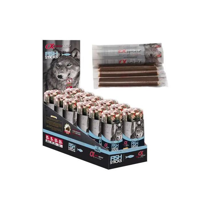 El snack para perros Alpha Spirit con pescado hará las delicias de tu mascota. Una golosina natural que aporta un exquisito sabor y una agradable textura, ideal para recompensar o premiar a tu perro. Sus ingredientes naturales y frescos mejoran las funciones fisiológicas: cardiovascular, visual y cognitiva, y son el suplemento ideal a la dieta diaria de tu mascota.El irresistible snack para perros Alpha Spirit está elaborado con un 45% de carne fresca de pescado, 20% de carne fresca de pollo y 20% de hígado de cerdo. Estos snacks están elaborados siguiendo unos sistemas de calidad que aseguran todo su sabor y propiedades durante mucho más tiempo, con una caducidad de hasta 18 meses. Es perfecto como premio o recompensa a tu mascota, ya que es muy saludable y nutritivo.Esta golosina natural aporta los nutrientes necesarios para la vida cotidiana de tu perro. Glucosamina y condroitina para la prevención de enfermedades articulares y de la degeneración del cartílago. También incluye aminoácidos naturales que contribuyen al desarrollo cognitivo, a la agudeza visual de tu fiel amigo y ayuda reducir el riesgo de enfermedades cardiovasculares.La tecnología “Tenderize Technology” que utiliza Alpha Spirit en sus productos garantiza la calidad de sus snacks y su excelente sabor. Para una alimentación apropiada es importante prestar atención a la calidad de las golosinas que les ofrecemos a los animales. Los snacks Alpha Spirit no contienen cereales o harinas de hueso y se componen de carne fresca y natural 100%.VENTAJAS:Snack de pescado muy nutritivo y saludable para perros.Golosina con un irresistible sabor elaborada con un 45% de carne fresca de pescado.Alta durabilidad y buena conservación, con fecha de caducidad de 18 meses.La tecnología “Tenderize Technology” en su fabricación garantiza su calidad.Con ingredientes naturales y frescos que mejoran las funciones fisiológicas.USO Y ESPECIFICACIONES:Snack con ingredientes frescos y naturales que supone un alimento complementario de calidad para la dieta diaria de los perros, mejorando determinadas funciones fisiológicas.Complemento ideal para adiestrar, educar o jugar con tu mascota.
