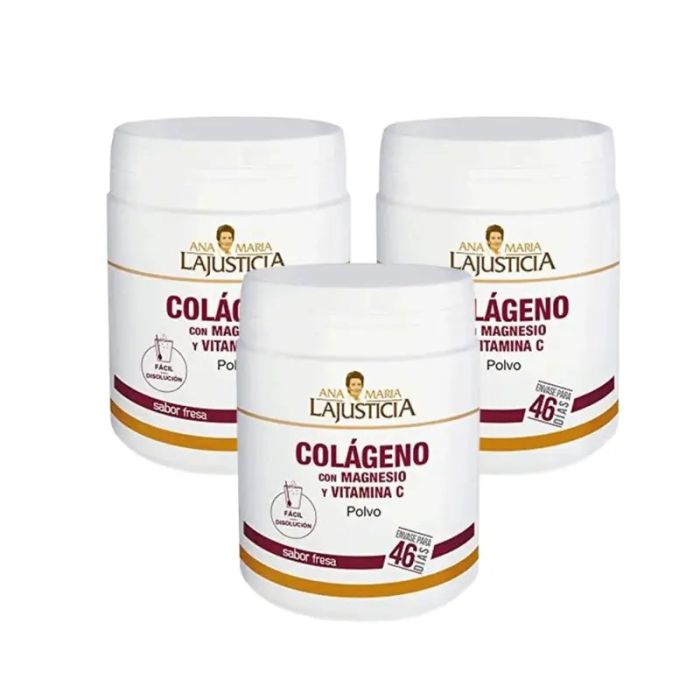 Ana María Lajusticia Colágeno con Magnesio y Vitamina C Sabor Fresa Pack 3 x 350 gr
