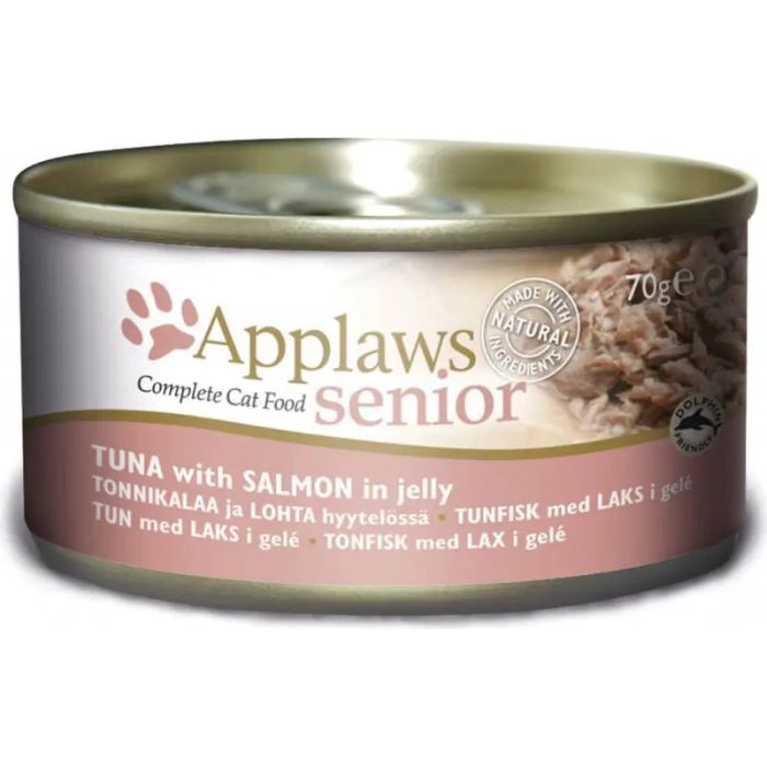 Applaws Cat Senior Lata Atún y Salmón es una comida húmeda de alta calidad para