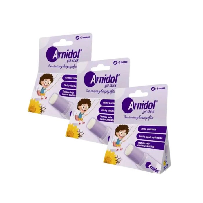 Arnidol GEL stickes una formulación natural a base de Árnica y Harpagofito que refresca y reconforta la piel aliviando los pequeños golpes de los niños. El Árnicasuaviza, hidrata y calma la piel. El Harpagofito aporta una agradable sensación de bienestar y confort. Si se trata de un golpe leve y SIN HERIDA, usa arnidol gel stick frotando suavemente la barra en la zona deseada con movimientos circulares. Aplicar las veces necesarias, pero no sobre heridas abiertas y evitar el contacto con los ojos o que tu hijo lo ingiera.