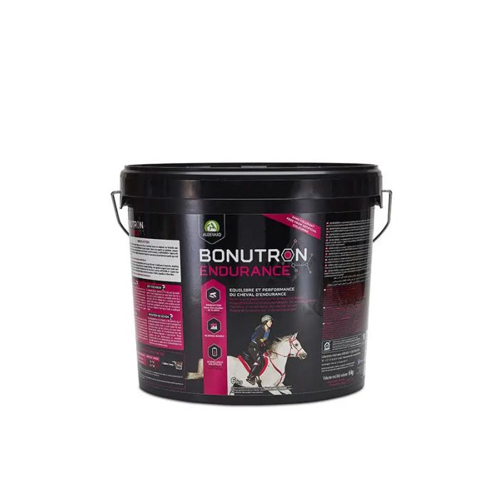 En el caballo de resistencia, los requerimientos de minerales (Ca, P y Mg) y vitaminas liposolubles (A y D) son mucho mayores en comparación con los del caballo de mantenimiento.Pero estas necesidades están cubiertas en gran parte por una dieta muy rica en forrajes. Todo el reto, por tanto, es aportar los elementos que faltan, en las cantidades adecuadas, evitando los excesos.BONUTRON ENDURANCE es un complemento alimenticio específico para caballos de resistencia, adaptado a los hábitos alimentarios actuales (forraje + cereales, con o sin pienso industrial). Para periodos de entrenamiento y competición. BONUTRON ENDURANCE también contiene levaduras que mejoran la digestibilidad de la fibra y promueven la liberación de ácidos grasos volátiles (AGV).FórmulaMagnesio + 14 vitaminas + 4 oligoelementos + 4 aminoácidos + 6 elementos extraConsejoBONUTRON ENDURANCE ha sido especialmente diseñado para complementar raciones compuestas principalmente de forraje (pasto y heno) y con pocos concentrados. Para raciones más cercanas a las de otros caballos deportivos (menos ricas en forraje y más ricas en concentrados), prefiera BONUTRON SPORT PRO.PresentaciónSaco de 2kg Ecopack de 6 kg Cubo de 12KGModo de empleo:1 cucharada = 50gIngesta diaria en caballos:> Pienso compuesto principalmente por forraje + concentrado mixto / Carreras < 100 km: 3 cucharadas/día*> Pienso compuesto principalmente por forraje + concentrado mixto / Carreras > 100 km: 2 cucharadas/día*> Pienso compuesto solo pienso + cereales: 4 cucharas/díaRecuerde tener disponible una piedra de sal.