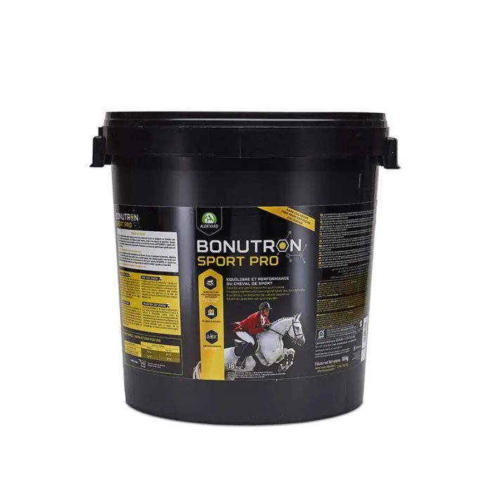 En el caballo de deporte de alto nivel, los requerimientos de minerales (Ca, P y Mg) y vitaminas liposolubles (A, D y E) están muy aumentados en comparación con los del caballo durante el mantenimiento. Todo el reto, por tanto, es conseguir aportar los elementos necesarios en las cantidades adecuadas, evitando los excesos. De hecho, las ingestas excesivas tienen consecuencias tan negativas como las ingestas insuficientes sobre el rendimiento del caballo.BONUTRON SPORT PRO es un aporte nutricional complementario específico para caballos deportivos de alto nivel, adaptado a los hábitos alimentarios actuales. Para periodos de entrenamiento y competición en caballos de salto, concurso completo, doma, conducción, riendas... BONUTRON SPORT PRO está enriquecido con polifenoles, para un aporte adicional de nutrientes antioxidantes.Los usuarios aprecian que la fórmula se adapte a las necesidades tanto de los caballos como de los ponis deportivos.FórmulaCombinación de minerales + 12 vitaminas y 4 oligoelementos + 3 aminoácidos y elementos "bonus"TipBonutron Sport Pro ha sido especialmente diseñado para caballos y ponis deportivos que trabajan más de 7 u 8 horas a la semana. Para caballos y ponis que trabajan menos, prefiera Bonutron LeisurePresentaciónSaco de 1,5 kgCaja de 3 kg Ecopack de9 kg Bidónde 18 kgModo de empleo: 1 cucharada = 25gIngesta diaria para caballos:> Pienso compuesto principalmente de pienso + cereal: 3 cucharadas / día> Pienso compuesto principalmente de pienso + pienso industrial: 2 cucharadas / díaIngesta diaria para ponis:> Pienso compuesto principalmente de pienso + cereal: 2 medidas/día> Alimentación compuesta principalmente por pienso + alimento industrial: 1 medida/díaRecuerde tener disponible una piedra de sal.