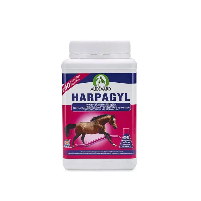 Sepa cómo observar a su caballo.Saber reconocer los signos que pueden indicar una necesidad de apoyo articular: cambios o dificultad en la movilidad del caballo durante el ejercicio (asimetría, falta de rebote, barras...), articulaciones calientes tras el ejercicio, rigidez o malestar cuando hace frío, rigidez al suelo duro, cruje al movilizar una extremidad. No dudes en anotar estos elementos con precisión y compártelos con tu veterinario quien podrá aconsejarte y recomendarte Harpagyl o Ekyflex Arthro.Saber anticiparse.La retrospectiva de nuestros veterinarios muestra que cuando el caballo ha tenido algunos episodios de rigidez, es muy probable que estos episodios regresen, dependiendo de la intensidad o acumulación de trabajo, o incluso dependiendo de las condiciones externas (suelo, humedad, temperaturas) . Sepa cómo anticiparse a estos episodios adaptando las condiciones de trabajo de su caballo y administrando Harpagyl tan pronto como sienta la rigidez para evitar que se instale. Pida consejo a su veterinario.Un paso flexible, rápido.Nuestros veterinarios siempre seleccionan ingredientes validados por estudios independientes para formular nuestros complementos alimenticios. También garantizan que las calidades y concentraciones proporcionadas cumplen con estos estudios. Este rigor es tanto más importante para Harpagyl como las diferencias entre los tipos de Harpagophytum son muy importantes. La calidad de nuestros ingredientes permite satisfacer a los usuarios de Harpagyl desde el 3er día.Durante el año, las articulaciones de tu caballo pueden estar más o menos sensibles. Estas variaciones dependen de la intensidad del trabajo, la profundidad o dureza del suelo, el lugar donde vive o trabaja tu caballo, la temperatura exterior. Los harpagosidos, uno de los componentes del Harpagophytum, son reconocidos como nutrientes naturales que permiten compensar las mayores necesidades del caballo en estos episodios. FórmulaMucho más que un producto con una alta concentración de Harpagophytum, Harpagyl también contiene omega-3 en forma vegetal, que complementan el producto de forma natural para favorecer el apoyo articular de tu caballo.Harpagyl tiene en su composición elementos que pueden hacer que tu caballo sea positivo al dopaje. Por lo tanto, se recomienda dejar de tomar 48 horas antes de una competencia. El programa ADP garantiza que ninguna contaminación llegue a dar positivo a su caballo por dopaje.