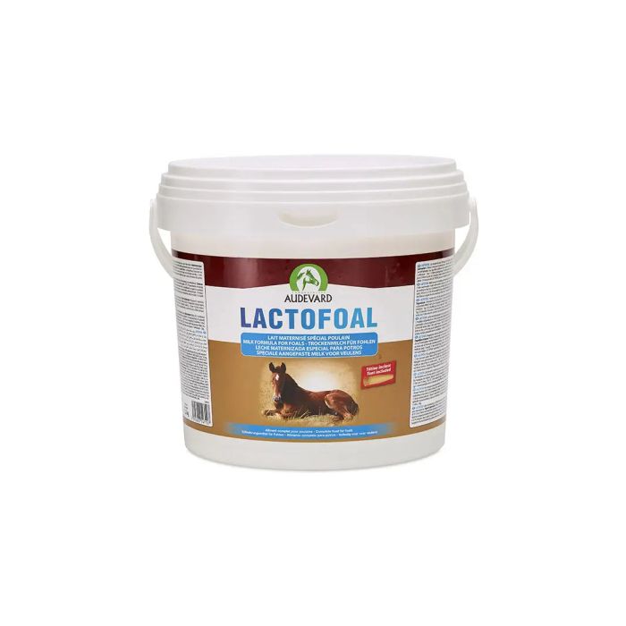 LACTOFOAL fue formulado por los Laboratorios AUDEVARD para reproducir con precisión las características de la leche de yegua.Leche materna para la cría y destete progresivo de potros huérfanos, para complementar la lactancia en caso de lactancia insuficiente de la yegua, para el post-destete.LACTOFOAL es apreciado por su fórmula completa que nutre al potro de manera específica respetando sus necesidades específicas. Cada caja viene con una tetina que cabe en un biberón clásico. PresentaciónBalde de 2,2 kg = 22 litros de lecheTambor de 14 kg = 140 litros de lecheFórmulaLa fórmula LACTOFOAL se adapta a las necesidades específicas del potro: niveles de proteína y grasa específicos de la especie equina; calidad óptima de proteínas; ingesta de pro y prebióticos. Se presenta en forma de polvo cuya disolución en agua es óptima.ConsejoA medida que se acerca la temporada de parto, recuerde tener una caja disponible. El formato de barril es práctico y económico para un uso prolongado. LACTOFOAL se puede añadir a la ración diaria del potro durante los 2 primeros meses del destete. Comience con 500 g y reduzca gradualmente.Modo de empleo: Leche materna para la cría y destete progresivo de potros huérfanos, para complementar la lactancia en caso de lactancia insuficiente de la yegua, para el post-destete.Dosis diaria: Diluir 2 medidas del producto en 1 litro de agua tibia. Agitar bien para obtener una mezcla fluida. Dar la leche al potro a unos 35°C. La leche preparada con antelación se puede conservar durante 24 horas en el frigorífico. Las cantidades a administrar se adaptarán según la raza y el estado de salud del potro. Adaptar gradualmente las cantidades y la frecuencia según las indicaciones que se dan a continuación:Día 1: 8 litros de leche por día (1 litro cada 3 horas),Día 10: 12 litros de leche por día (2 litros cada 4 horas o 25% de peso corporal en leche reconstituida por día),1 mes: 15 litros de leche al día (3 litros cada 5 horas).Entre el 3er y 4to mes, cambie gradualmente a alimento seco y destete al potro. Complemento alimenticio postdestete para el potro: verter en la ración 10 medidas de LACTOFOAL al día y reducir las cantidades gradualmente.1 cucharada = 50g