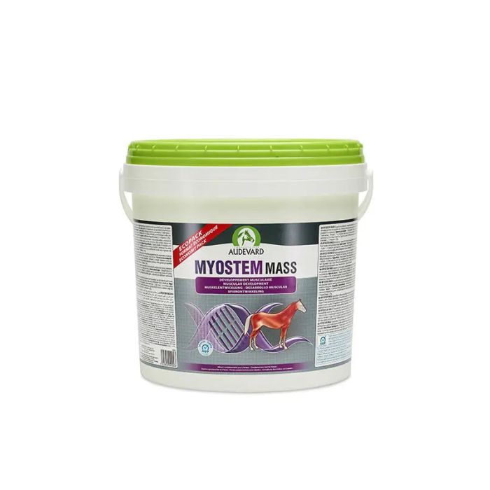 MYOSTEM MASS es un alimento complementario formulado por los Laboratorios AUDEVARD. Enriquecido con aminoácidos esenciales y limitantes, ha sido diseñado para proporcionar a los caballos un soporte nutricional adaptado al desarrollo muscular de los caballos en entrenamiento, caballos viejos o deficientes y potros en crecimiento.FórmulaLa fórmula MYOSTEM MASS es un suministro calculado y concentrado de los llamados aminoácidos "limitantes" porque a menudo los alimentos los proporcionan en cantidades insuficientes. La alholva mejora la ingesta de alimento en los caballos y los prebióticos ayudan a la digestión.