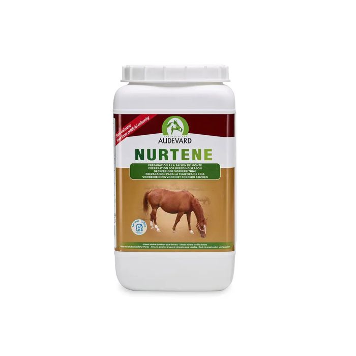 NURTENE se recomienda para la preparación para el apareamiento/inseminación en yeguas de cría y para muestras de sementales.Los usuarios aprecian el acondicionamiento de NURTENE que permite monitorear a una yegua 3 semanas antes del apareamiento y 2 semanas después.PresentaciónCaja de 2kg. Permite una duración de uso de hasta 6 semanas en un caballo adulto.Balde de 6 kg. Permite una duración de uso de hasta 18 semanas en un caballo adulto.Bidón de 12 kg. Permite una duración de uso de hasta 34 semanas en un caballo adulto.FórmulaLa fórmula NURTENE proporciona a la yegua de cría más de 15 nutrientes concentrados, incluido el betacaroteno.ConsejoNURTENE también se usa ampliamente en el semental.Modo de empleo: Ingesta nutricional suplementaria para caballos reproductores antes y durante la época de cría.Ingesta diaria: 1 medida (50 g) al día.Duración de uso: comenzar de 6 a 8 semanas antes de la cría. Continúe hasta que se confirme el embarazo para las yeguas de cría y durante la temporada de reproducción para los sementales.Pienso complementario para caballos Composición : fosfato dicálcico, levadura de cerveza, óxido de magnesio, suero de leche, bicarbonato de sodio, sorbitol. Aditivos (por kg): -3a- Vitaminas, provitaminas y sustancias de efecto similar: 3a890 cloruro de colina 35000 mg, 3a160a β-caroteno 5600 mg, 3a314 niacina 3500 mg, 3a821 vitamina B1 1000 mg, 3a672a vitamina A 1.700.000 UI, 3a700 vitamina E 8.000 UI. -3b- Oligoelementos: zinc (3b603 óxido) 10.000 mg, manganeso (3b502 óxido) 3.500 mg, cobre (3b405 sulfato) 1.000 mg, yodo (3b202 yodato de calcio) 120 mg, selenio (3b801 selenito) 18 mg. -3c- Aminoácidos: 3c301 DL-metionina 60.000 mg. Componentes analíticos: humedad < 10%, ceniza bruta 49%, calcio 6%, fósforo 6%, sodio 5%.