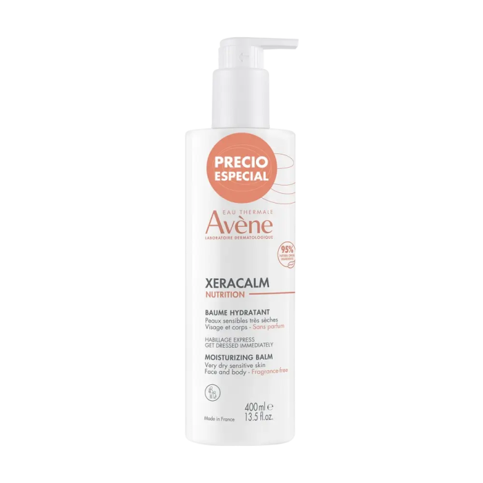 Este producto de cuidado diario de alta tolerancia, compuesto por un 95 % de ingredientes de origen natural, refuerza la barrera cutánea del rostro y del cuerpo. Bálsamo hidratante y nutritivo para pieles sensibles y muy secas, apto para toda la familia, su composición incluye aceite de cardo mariano que potencia la síntesis de ceramidas para una acción antisequedad. Su textura untuosa, no grasa y sin perfume, permite una fácil aplicación y una rápida absorción. Alivia la tirantez, nutre e hidrata durante 48 horas*. XERACALM NUTRITION Bálsamo hidratante es un producto responsable con el medioambiente. Su envase de 400 ml contiene un 70 % de material reciclado. El bote está hecho de plástico 100 % reciclado***Prueba instrumental, 30 sujetos, dos veces al día durante 7 días.**excepto el dosificador