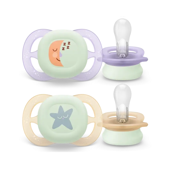 Avent Chupete 2 Chupetes Ultra Start Nocturno 0-2M Niña, 2 Unidades