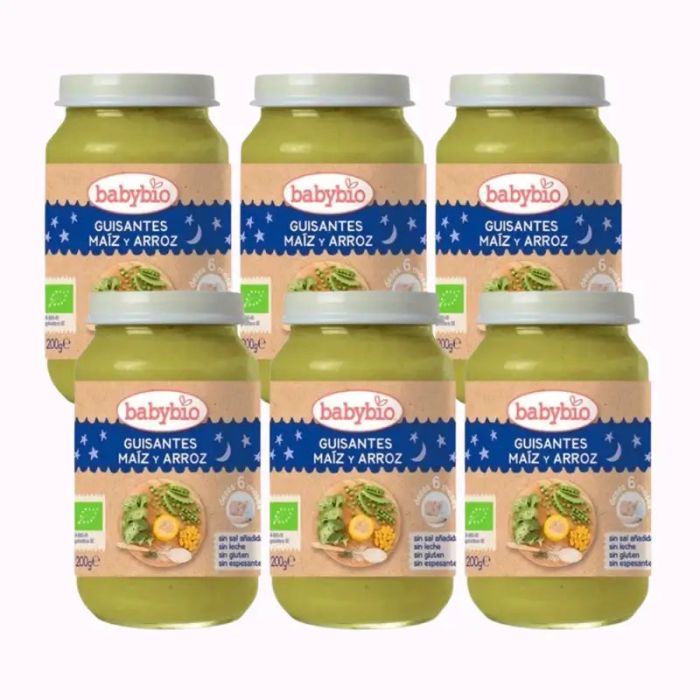 Babybio Buenas Noches Guisantes-Maiz-Arroz, Pack 6 x 200 gr