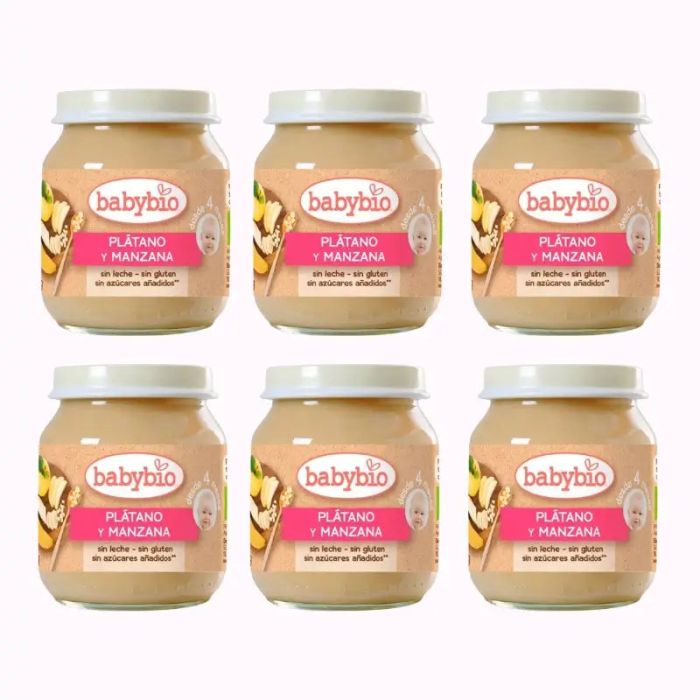 Babybio Plátano y Manzana, Pack 6 x 130 gr