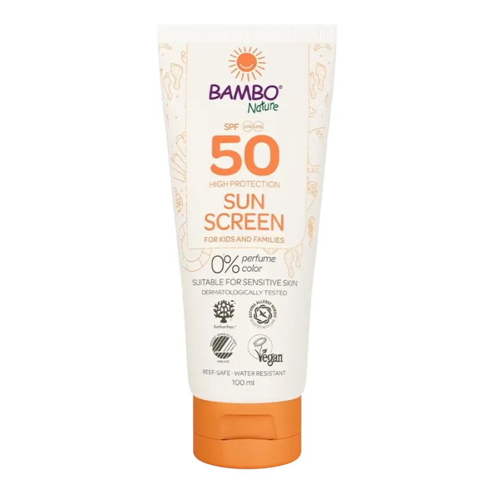 La Crema Solar Bambo Nature SPF 50 – 100 ml ha sido formulada para proporcionar una protección solar de amplio espectro especialmente eficaz frente a los rayos UVA y UVB, garantizando la máxima seguridad para la piel sensible de bebés, niños y adultos. Con un SPF 50, esta crema es ideal para situaciones de exposición solar intensa y prolongada, como días en la playa, la montaña o actividades al aire libre bajo un sol fuerte. Su fórmula resistente al agua asegura que la piel se mantenga protegida incluso durante deportes acuáticos o largos periodos de actividad física.A diferencia de la Crema Solar SPF 30, que es ideal para el uso cotidiano en situaciones de exposición moderada, el SPF 50 está diseñado para proteger la piel en entornos donde la exposición solar es más intensa, proporcionando una barrera más fuerte y duradera contra los rayos nocivos del sol. La textura es ligera y de rápida absorción, lo que facilita su aplicación sin dejar residuos grasos ni sensación pegajosa.La Crema Solar SPF 50 está formulada sin perfumes ni colorantes, siendo dermatológicamente probada para garantizar su seguridad en pieles sensibles y propensas a alergias. Además, como todos los productos solares de Bambo Nature, esta crema es reef safe, lo que significa que no daña los ecosistemas marinos, lo que la convierte en una opción segura tanto para la piel como para el medio ambiente. Está certificada por ECOCERT COSMOS, Asthma Allergy Nordic y Vegan Society, garantizando un uso responsable y sostenible.Beneficios clave:Protección solar alta SPF 50: Proporciona una protección eficaz frente a los rayos UVA y UVB, ideal para exposiciones prolongadas al sol.Textura ligera y de rápida absorción: Protege sin dejar sensación grasa o pegajosa.Resistente al agua, ideal para actividades acuáticas y deportes al aire libre.Hidratación profunda: Mantiene la piel suave y nutrida, evitando la sequedad causada por el sol.Fórmula sin perfumes ni colorantes, adecuada para pieles sensibles.Reef safe, respetuoso con el medio ambiente, minimizando el impacto en los ecosistemas marinos.Certificaciones ECOCERT COSMOS, Asthma Allergy Nordic y Vegan Society.