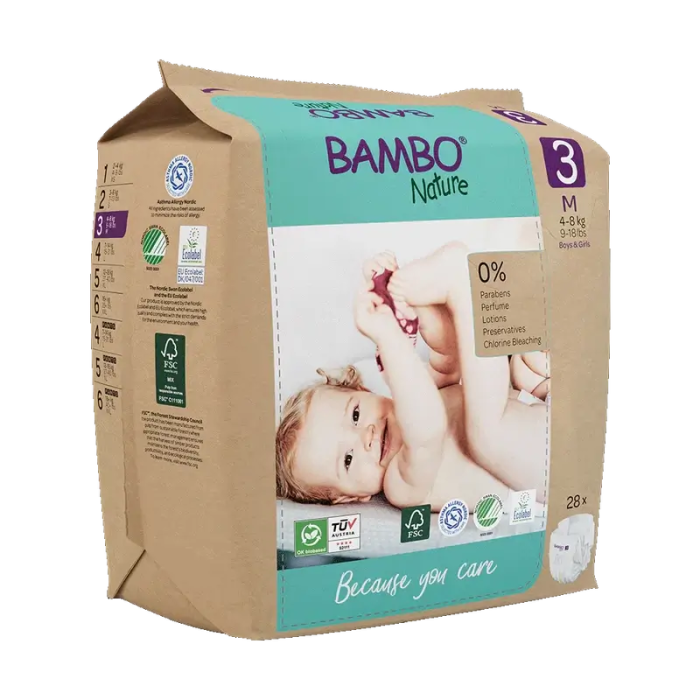 Bambo Nature Pañales Talla3(4-8Kg), 28 unidades
