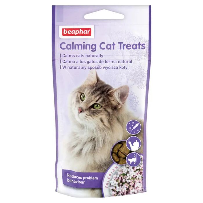 Snacks anti estrés con valeriana y sabor a pollo para gatos El snack anti estrés Calming Cat Treats Beaphar es una rica golosina para gatos con sabor a pollo que ayuda a reducir la ansiedad en los momentos de estrés.