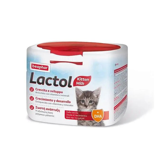 lactantes y gatos enfermos o convalecientes. Lactol Kitten Milk ha mejorado su formulación y se ha enriquecido con DHA (ácido docosahexaenoico) que está presente de forma natural en la leche materna. De fácil digestión, Lactol Kitten Milk proporciona la dosis correcta de materia grasa y todas las vitaminas, minerales y oligoelementos necesarios, así como una gran cantidad de aminoácidos esenciales, incluida la taurina vital, para el mejor comienzo de la vida.