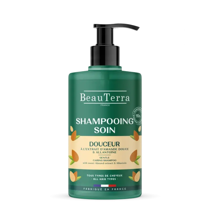 Champú suave para todo tipo de cabellos, limpia suavemente el cabello con suavidad y eficacia. Alivia la sensación de picor, protege el cuero cabelludo, restaura la suavidad, la felxibilidad y el brillo del cabello. 95 % de ingredientes naturales. Dermatológicamente probado. Botella de plástico reciclado, 100 % reciclable.