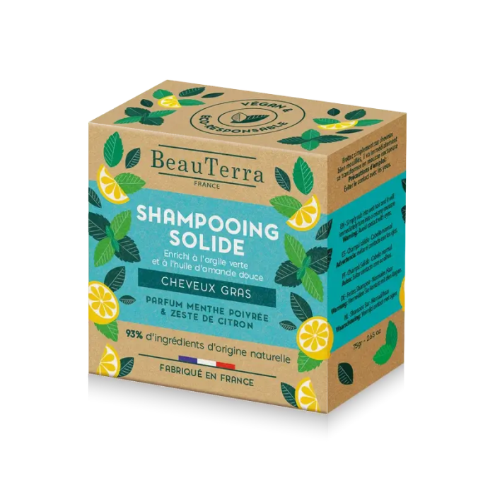 Beauterra Sólida Champú Sólido De Menta Y Cáscara De Limón (Cabello Graso) , 75 gr