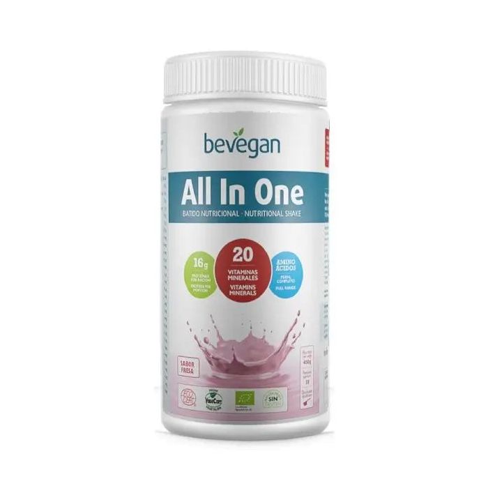 Bevegan All In One Batido Nutricional Fresa 450Gr. Bio Sg Vegan