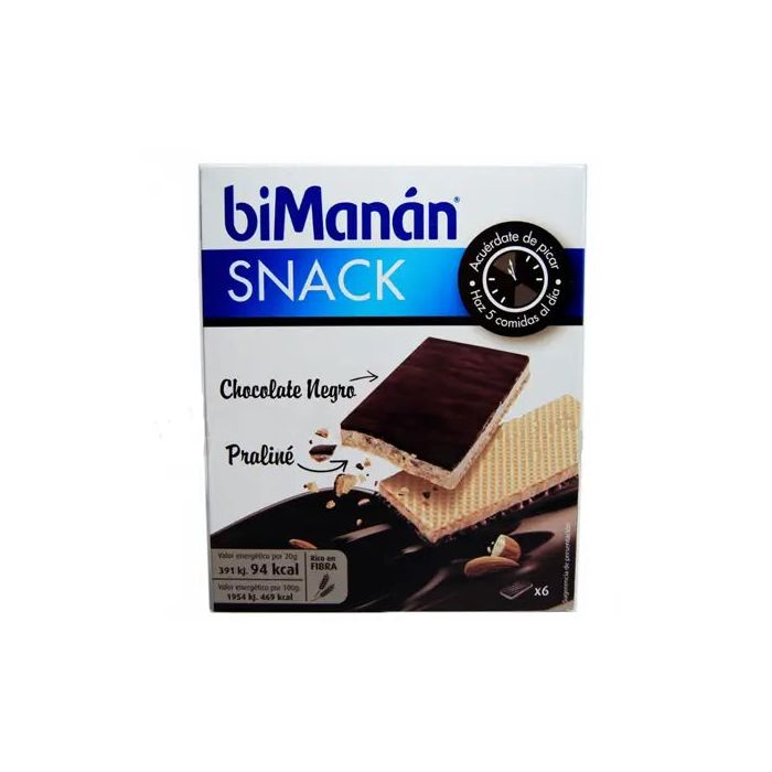 biManán Snack Chocolate Negro y Praliné 20 gr 6 Barritas