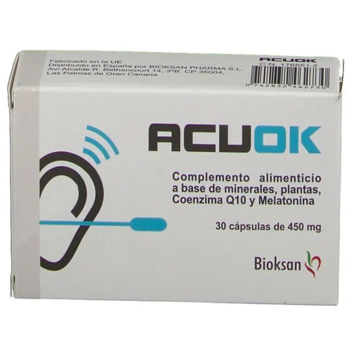 ACUOK es un suplemento alimenticio que ayuda a tratar los síntomas del oído como