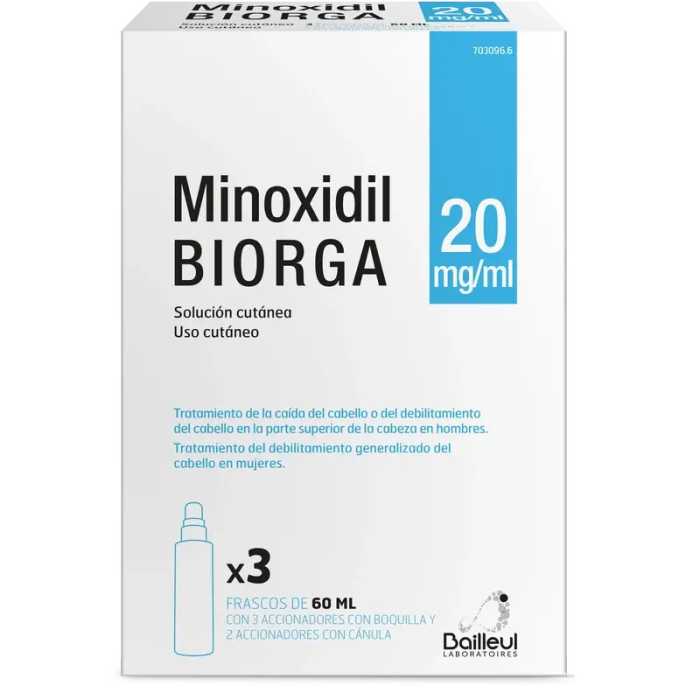 Biorga 20 Mg/ ml Minoxidil Solución Cutanea 3 Frascos 60 ml + 3 Accionadores deBoquilla y 2 Accionadores con Canula