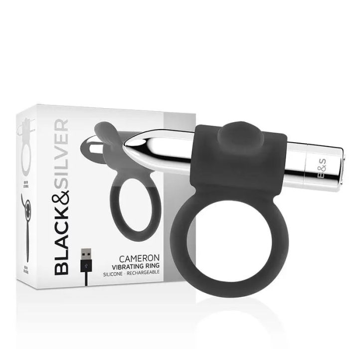 Máximo disfrute para él y para ella. ¡El juego del amor extendido les da a ambos socios momentos sensuales! 'Fantástico anillo vibrador para jugar en pareja. Dispone de 10 tipos de vibración diferentes y dos modos rítmicos que aumentarán el placer de ambos. Puede durar hasta 60 minutos en funcionamiento.POTENCIADOR DE LA ERECCIÓNCameron encuentra su uso en el juego de amor mutuo y les brinda placeres felices a ambos: Potencia el orgasmo gracias a su ajuste perfecto en el pene, efectivamente retrasa su eyaculación y le brinda la máxima resistencia además de una erección firme y dura, ¡y eso no solo lo hará feliz! Además, el estimulador de clítoris de área grande es ancho y estimula tu perla de placer con solo presionar un botón con los 10 modos de vibración intensa. Mima tu sexo con sus vibraciones profundas y te catapulta al clímax.Y eso no es todo: gracias a su acabado impermeable, ¡la diversión para todos ustedes, tritones y sirenas de baño en la ducha no se detiene! ¿O qué tal un concierto de estimulación ronroneante como parte de un baño romántico para dos ...?¡DALE PODER!Blac&Silver ring está equipado con baterías integradas y, por lo tanto, se puede recargar de forma respetuosa con el medio ambiente. El cable de carga magnético USB incluido se puede complementar con un enchufe de alimentación estándar de 5 V si es necesario.AÚN MÁS DIVERTIDO CON LUBRICANTESPara un placer suave máximo, utilice siempre el anillo del pene con uno de los lubricantes a base de agua de Waterfeel original, que combinan de forma ideal con el producto. Esto hará que su experiencia sea húmeda e intensa y agregará un factor adicional de variedad. Están disponibles en muchas variantes incluso con efecto calor. La composición vegana a base de agua es suave con el material y mantiene la superficie mate de seda de tu anillo agradable y suave.MATERIAL Y CUIDADOEl anillo está hecho de silicona médica suave como la seda. El producto se puede limpiar fácilmente con un poco de jabón y agua tibia. Con un poco de limpiador desinfectante para juguetes, puede garantizar una higiene particularmente profunda en todos los aspectos, idealmente con el spray desinfectante perfectamente coordinado de Waterfeel.Aniillo vibrador 100% silicona médica Potente motor, Bala extraible USB recargable. Carga magnética 10 modos de vibración Silicona elástica Potente estimulación 100% resistente al agua, apto para la ducha o el spa Bodysafe, sin ftalatos Diámetro: desde los 3.5 cm hasta los 8.6 cm 1 año de garantía Disfrutar verdaderamente del sexo en pareja ahora es posible con Cameron