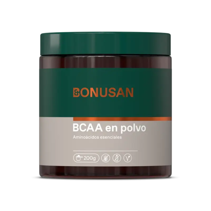 Bonusan Bcaa 200Gr es un suplemento de aminoácidos de cadena ramificada (BCAA)