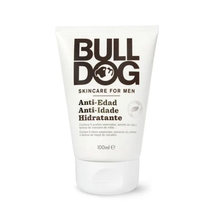 Crema hidratante Anti-Edad de uso diario para hombre - 100 ml Retrasa los índices de las arrugas y las líneas finas del rostro. Especialmente formulado para hidratar la piel, dejándola suave y nutrida gracias a los ingredientes Romero, Equinácea y Vitamina E. Fragancia Anti-Edad: Nuestra combinación única de 6 aceites esenciales es una mezcla contemporánea y moderna de cítricos frescos, pachulí y maderas. Aplicar en la mañana y en la noche de manera uniforme en la cara y cuello después de la limpieza facial. Anti-Edad: Sólo porque un Bulldog tenga arrugas, tú no tienes por qué tenerlas. No contiene parabenos, SLS, colores artificiales o fragancias sintéticas. Todos nuestros productos están certificados por Cruelty Free International y son ideales para vegetarianos y veganos. Con la garantía de calidad de Bulldog Cuidado Facial para Hombres.