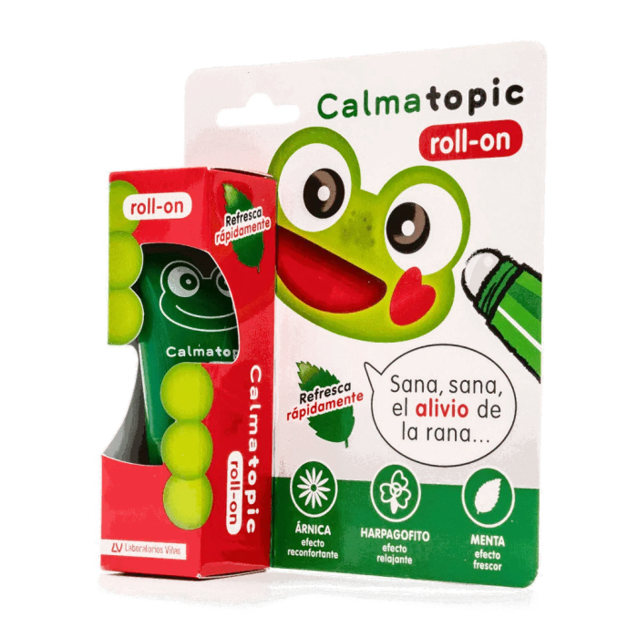 El Calmatopic Roll-On de Laboratorios Viñas, brinda una rápida sensación de alivio y confort ante cualquier caída o golpe en la piel de los niños. Su fórmula está elaborada con extracto de plantas naturales, que ofrecen un efecto frío que favorece el rápido alivio de la lesión inhibiendo su inflamación.