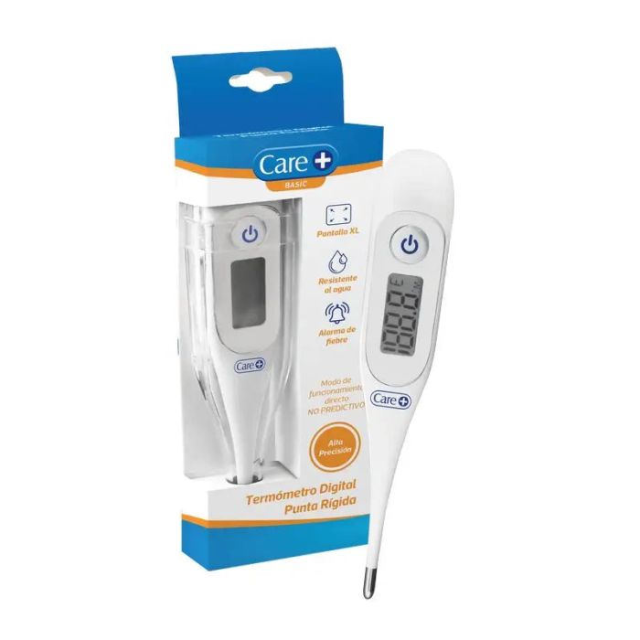 El Termómetro Digital Punta Rígida de Care+ es una herramienta confiable y precisa para medir la temperatura corporal en diferentes grupos de edad, desde bebés hasta adultos. Su diseño con punta rígida facilita su uso en diferentes áreas del cuerpo, incluyendo la oral, rectal y axilar, asegurando mediciones precisas en cada caso. Con un rango de medición amplio, que va desde los 32°C hasta los 42.9°C (y también en °F), este termómetro es capaz de adaptarse a diversas situaciones y necesidades.Una característica destacada de este termómetro es su alarma de finalización de medición, que emite un sonido distintivo para indicar cuando la lectura está lista, lo que facilita su uso, especialmente en el caso de bebés y niños inquietos. Además, su pantalla clara y fácil de leer muestra los valores de temperatura de manera rápida y precisa, permitiendo una observación inmediata de los resultados.Este termómetro funciona con pilas, lo que lo hace práctico y portátil para su uso en el hogar o mientras se viaja. Su diseño ergonómico y su precisión lo convierten en una herramienta esencial para el cuidado de la salud de toda la familia.