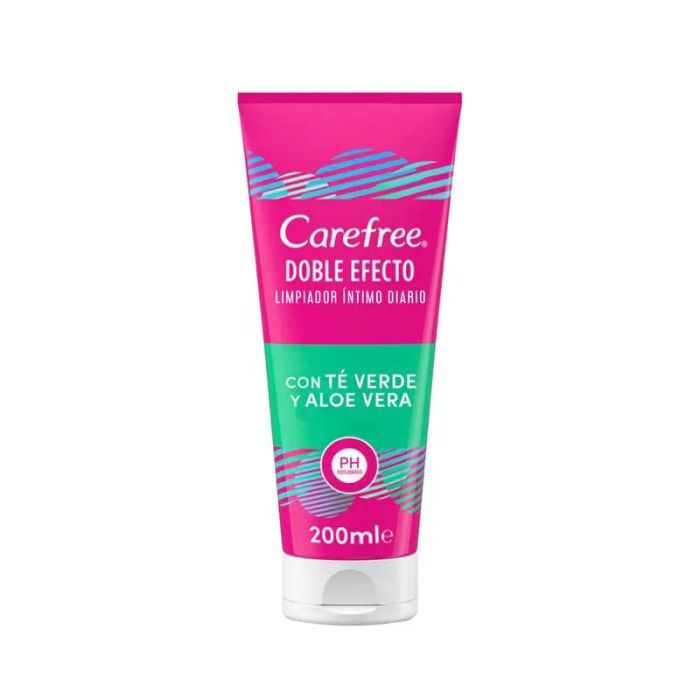 El limpiador íntimo de doble efecto de Carefree, tiene propiedades refrescantes y suavizantes. El producto contiene una mezcla de té verde y aloe vera de origen natural y ha sido diseñado específicamente para el cuidado de tu zona íntima. Esto ayudará a que la ducha se mantenga fresca durante más tiempo, hasta 12 horas. Este producto es suave con la piel y respeta tu pH íntimo natural, ya que ha sido testado ginecológica y dermatológicamente. Se puede utilizar a diario para una máxima frescura.Frescor duradero hasta 12 horasTestado ginecológicamenteSu fórmula suave y sin jabón respeta tu pH íntimo naturalTestado dermatológicamentepH equilibrado