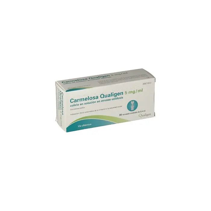 El principio activo de Carmelosa Qualigen es la carmelosa sódica. Cada ml de solución contiene 5 mg de carmelosa sódica. El resto de componentes son cloruro de sodio, lactato de sodio, cloruro de potasio, cloruro de calcio dihidrato, cloruro de magnesio hexahidrato, hidróxido de sodio, ácido clorhídrico y agua para preparaciones inyectables.