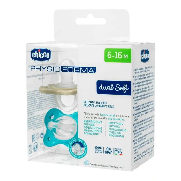 Chicco Chupete Physioforma Dual Soft Sil Azul 6-16 Meses , 2 unidades