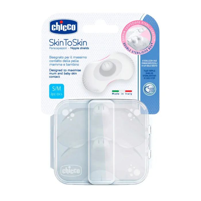 Chicco - Protegepezón Silicona Skintoskin Talla S/M 2 Ud es un producto elaborado con silicona extra fina que resulta casi imperceptible cuando el bebé está pegado al pecho materno y así generar una sensación piel con piel. Con este producto la madre puede continuar con la lactancia a pesar de las molestias, manteniendo la temperatura y el olor del pecho, para que el bebé no pierda las sensaciones táctiles y olfativas.