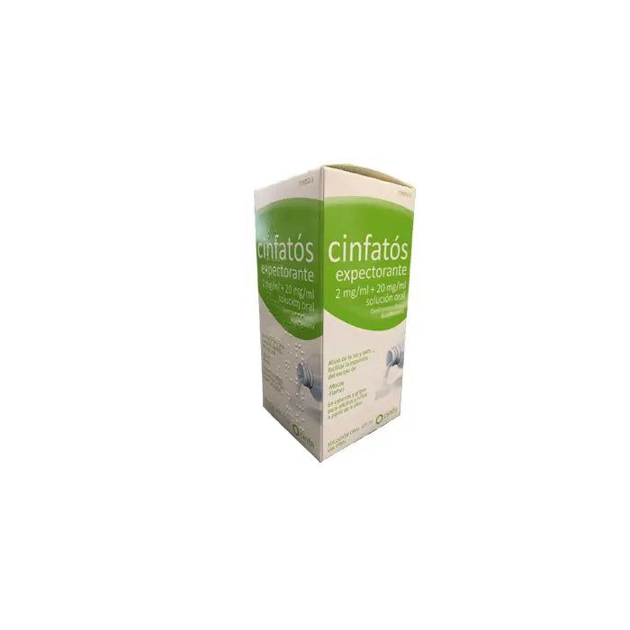 Cada ml de Cinfatos Expectorante contiene 2,0 mg Dextrometorfano Hidrobromuro y 20 mg Guaifenesina como principios activos principales. El resto de excipientes son: Povidona, Sorbitol líquido no cristalizable (E-420), Benzoato de sodio (E-211), Sacarina sódica, Ácido cítrico monohidrato, Aroma de naranja, Agua purificada