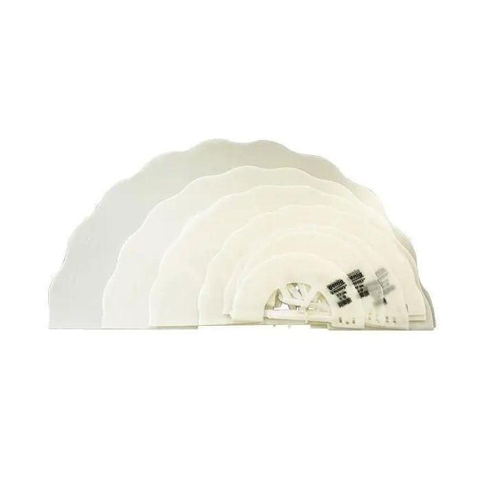 Collarines de polipropileno opaco.• Sistema de fijación estándar.• Borde exterior ondulado para reducir el impacto frontal.• Líneas antiarañazos grabadas.• Marca negra.