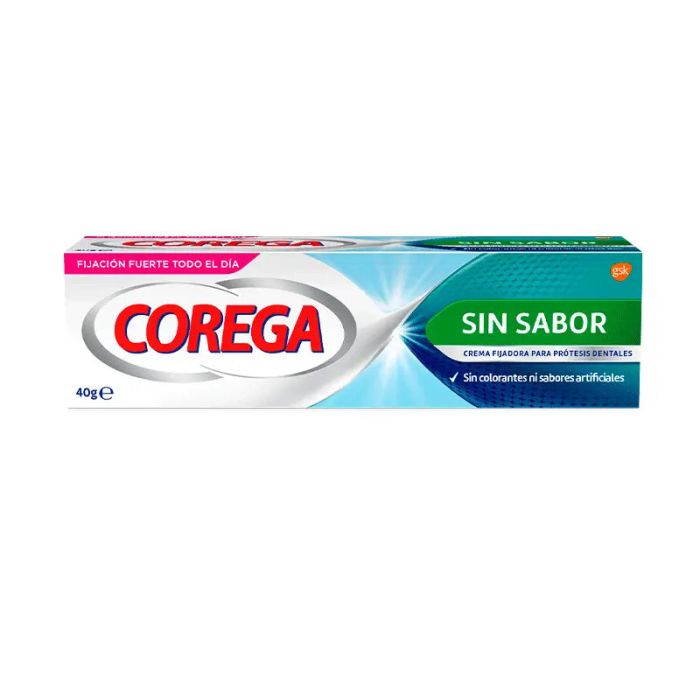 Corega Sin Sabor es una crema fijadora para prótesis dentales que proporciona