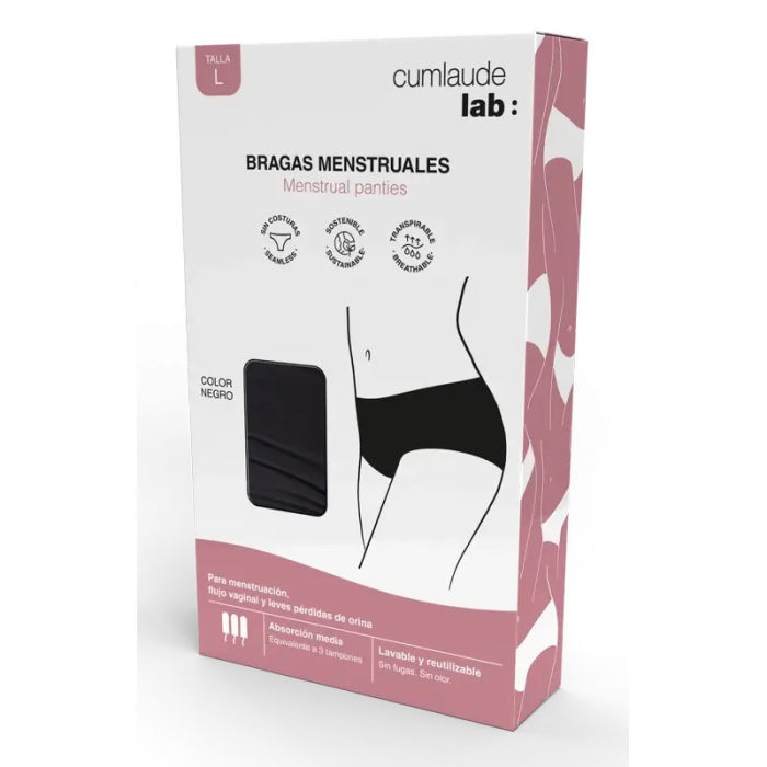 Bragas menstruales de absorción media-alta, equivalente a 3 tampones regulares. Cómodas y transpirables, están diseñadas para durar y ser reutilizadas tantas veces quieras.Hecho de poliamida 80% + elastano 20% y escogido cmo materiales principales por su suavidad, confort y transpirabilidad.- Tejido forro interior: 100% algodón. Es la parte en contacto con la piel.- Capas intermedias absorbentes: 100% poliéster, te mantiene seca y cómoda. - Membrana impermeable: 100% poliéster con TPU. Evita pérdidas durante el período. Color negro y sin costuras