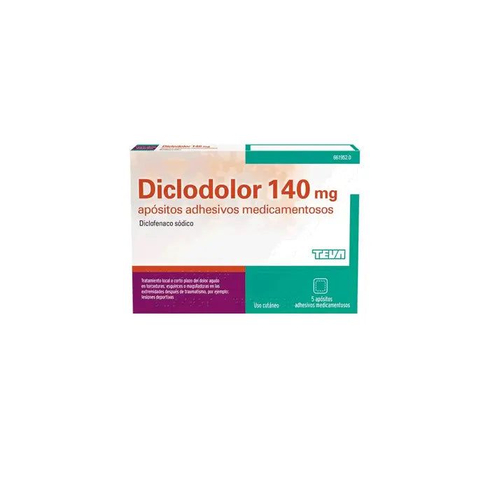 Cada apósito Diclodolor contiene 140 mg de diclofenaco dietilamina. El resto de excipientes son: Glicerol, Sorbitol líquido cristalizable (E-420), Carmelosa sódica, Poliacrilato sódico,Propilenglicol (E-1520), Diisopropil adipato, Copolímero base de metacrilato de butilo, Edetado de disodio, Macrogol éter laurílico (9 unidades EO), Levomentol, Ácido tartárico, Agua purificada, Soporte no tejido de poliester, Lámina protectora de polipropilenoSulfito de sodio (E-221), Butilhidroxitolueno (E-321), Sulfato seco de aluminio potásico, Sílice coloidal anhidra, Caolín ligero (natural).