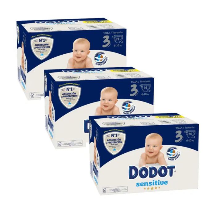 Dodot Pack 3X Sensitive Pañal Recién Nacido Box Talla 3, 74 unidades