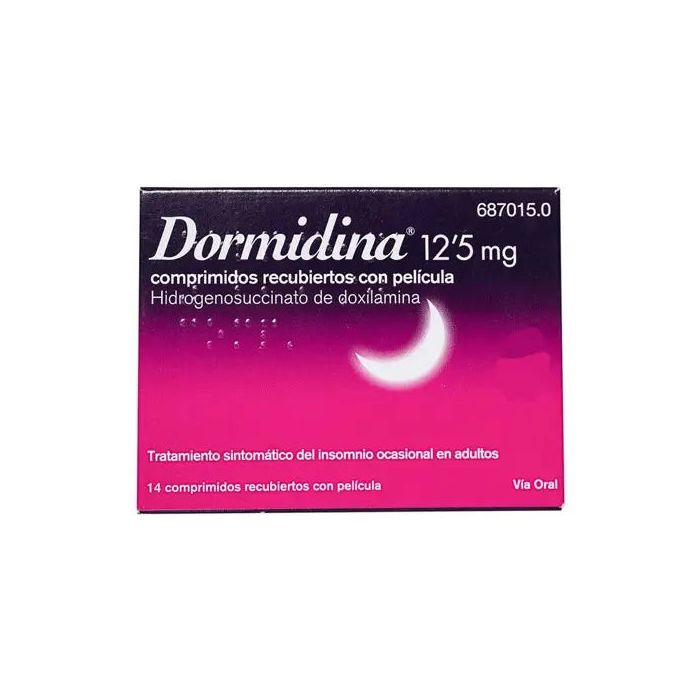 Cada comprimido de Dormidina contiene 12,5 mg de hidrogenosuccinato de doxilamina como principio activo principal. El resto de excipientes presentes en el núcleo son: Hidrogenofosfato de calcio dihidrato (E-341), Celulosa microcristalina (E-460), Carboximetilalmidón sódico (tipo A) de patata, Sílice coloidal anhidra (E-551), Estearato de magnesio (E-572). Los componentes recubridores son: Celulosa microcristalina (E-460), Estearato de polioxietileno-40 (E-431), Propilenglicol (E-1520), Hipromelosa (E-464), Dióxido de titanio (E-171), Rojo cochinilla A (E-124), Polietilenglicol 400, Polietilenglicol 6000.