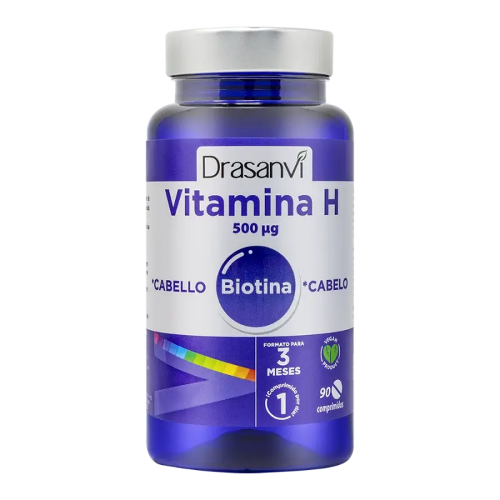 Vitamina H 500 µg biotina, 90 comprimidos de Drasanvi es un complemento que