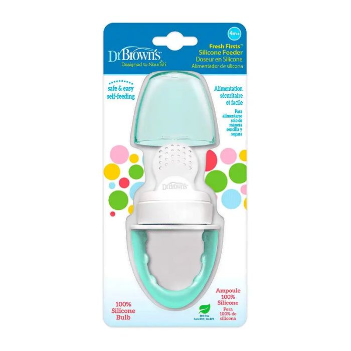 Dr. Brown´s Alimentador Antiahogo Silicona +4m Verde es un producto elaborado a base de silicona, sin malla, con pequeños orificios que dejan pasar comida para que el bebé se alimente, pero con tamaños seguros. El bulbo de silicona se adapta a la boca del bebé y es resistente a mordiscos.