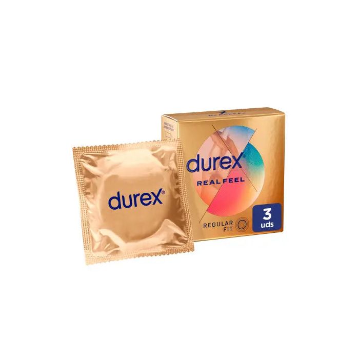 Durex Preservativos Real Feel, Sensación Piel Con Piel, Sin Látex, 3 Condones