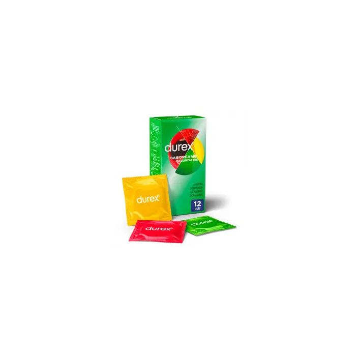 Durex Preservativos Saboreame con Sabores Afrutados - Fresa, Plátano, Naranja yManzana 12 unidades